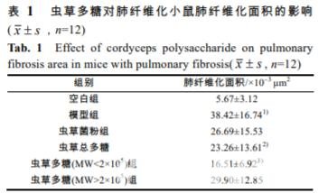 肺纖維化是由多種原因引起的急慢性間質(zhì)性 肺疾病,主要病因?yàn)闅馓撽幪摗⒎文I虧虛、痰瘀 互阻肺絡(luò)。近年來(lái),肺間質(zhì)纖維化發(fā)病率有增高 趨勢(shì),傳統(tǒng)的糖皮質(zhì)激素和細(xì)胞毒藥物療效不佳。 蟲(chóng)草多糖是發(fā)酵蟲(chóng)草菌粉中最主要的生物活性物 質(zhì),蟲(chóng)草發(fā)酵過(guò)程中產(chǎn)生的廢液(濾液)中還含有較 豐富的蟲(chóng)草多糖。根據(jù)文獻(xiàn)報(bào)道,其具有抗氧化、 抗腫瘤、增強(qiáng)免疫等作用,也有抗大鼠肝纖維 化作用,但抗肺纖維化作用的報(bào)道尚不多見(jiàn)。本 實(shí)驗(yàn)研究從蟲(chóng)草發(fā)酵廢液中提取得到的蟲(chóng)草多糖 抗小鼠肺纖維化作用,為蟲(chóng)草發(fā)酵廢液的合理應(yīng)用 和抗肺纖維化藥物的研發(fā)提供一定的實(shí)驗(yàn)依據(jù)。
