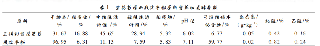 鼓風(fēng)干燥箱( 型號(hào)為 DHG-9247A) ,購(gòu)自上海精宏實(shí)驗(yàn)設(shè)備有限公司; 全自動(dòng)凱氏定氮儀( 型號(hào) 為 8400) ,購(gòu)自浙江托普儀器有限公司; 紫外分光光 度計(jì)( 型號(hào)為 T6) ,購(gòu)自上海菁華科技儀器有限公司; 中性酸性洗滌纖維測(cè)定儀( 型號(hào)為 ST116A) ,購(gòu)自山 東盛泰儀器有限公司; 粗脂肪測(cè)定分析儀( 型號(hào)為 WG550) ,購(gòu)自濟(jì)寧市同創(chuàng)機(jī)械有限公司; pH 計(jì)( 型 號(hào)為 PHS-25) ,購(gòu)自上海雷磁儀器有限公司; 高效液 相色譜分析儀( 型號(hào)為 e2695) ,購(gòu)自島津企業(yè)( 中國(guó)) 有限公司。